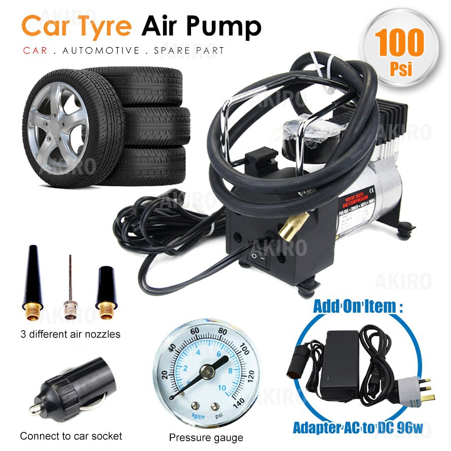 Akiro Powerful Metal 100psi Car Tyre Air Compressor Inflator Pump Heavy Duty Dc Motor Tire Pam For Car 4wd Truck Lorry Shopee Malaysia